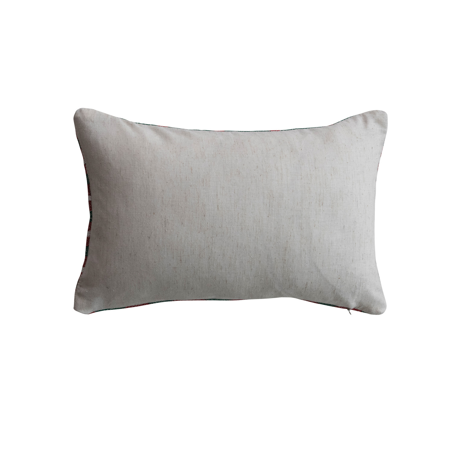 Catalog Name: 14"L x 9"H Cotton Embroidered Lumbar Pillow w/ Zig Zag Pattern "Be Naughty Save Santa...", Red, Green & Natural