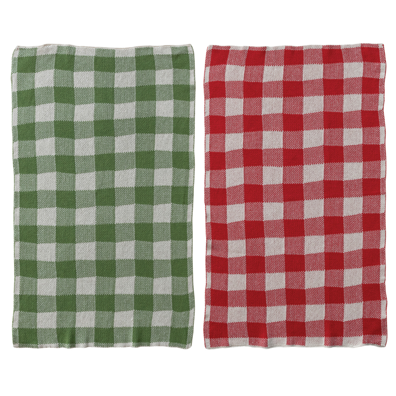 Cotton Knit Tea Towel with Buffalo Check Pattern, 2 Colors