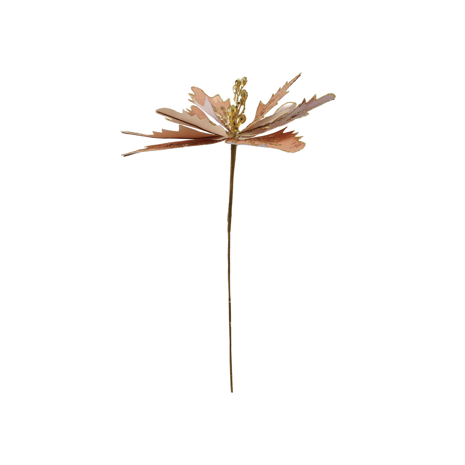 Catalog Name: 9-1/2" Round x 17"H Faux Flower Pick w/ Glitter, Gold Finish & Blush Color