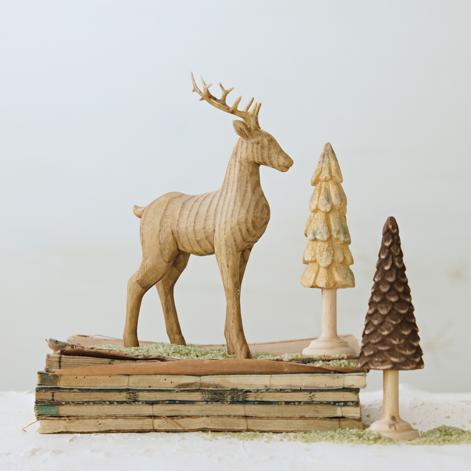 Catalog Name: 2" Round x 7"H Carved Wood Tree, 2 Styles
