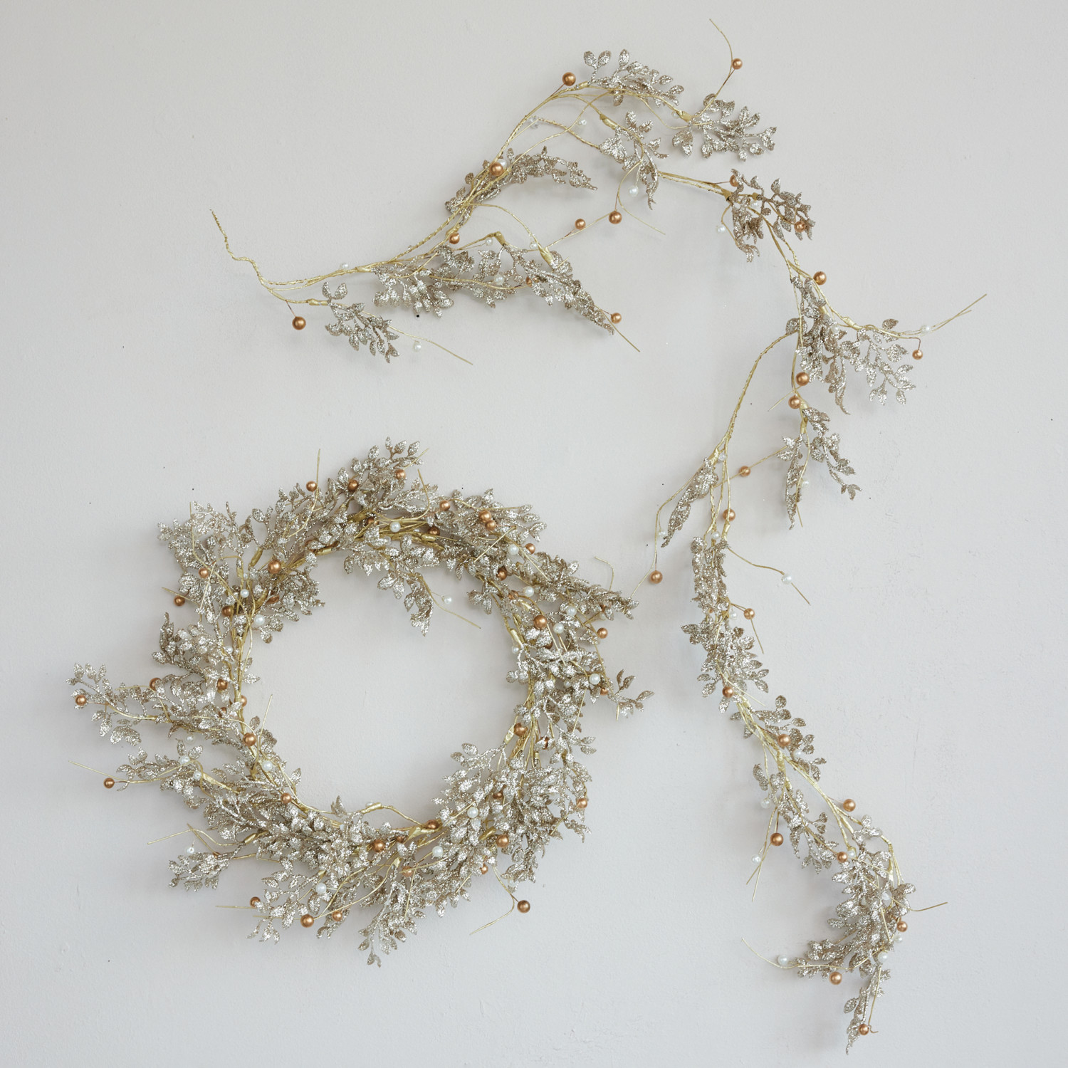 Plastic Garland with Faux Pearls, Glitter & Beads, Gold & Silver Finish