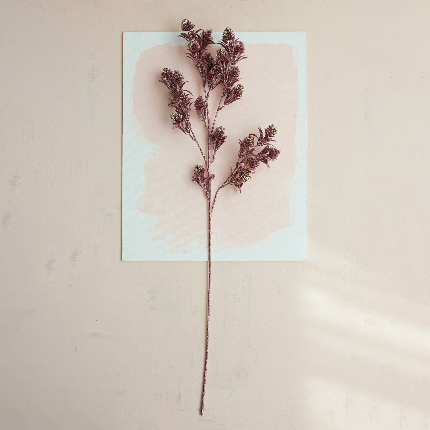 Faux Botanical Stem with Glitter, Jewels & Faux Pearls, Pink