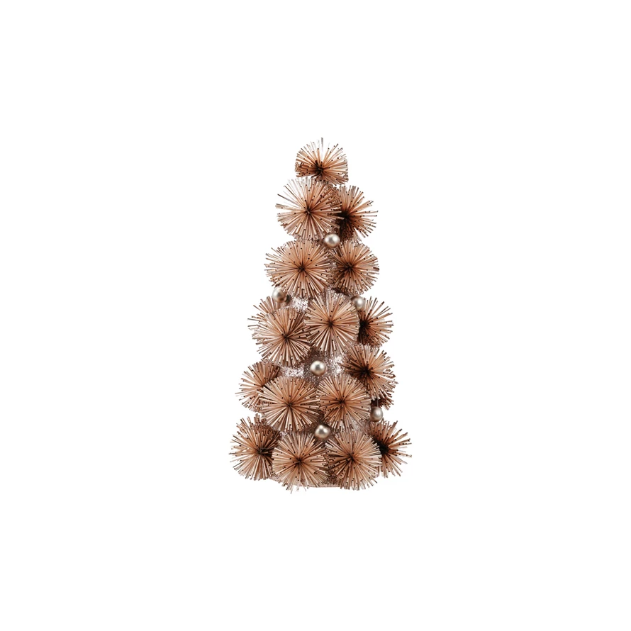Catalog Name: 7-1/2" Round x 13"H Plastic Tinsel Ball Tree w/ Glitter & Silver Color Beads, Blush Color