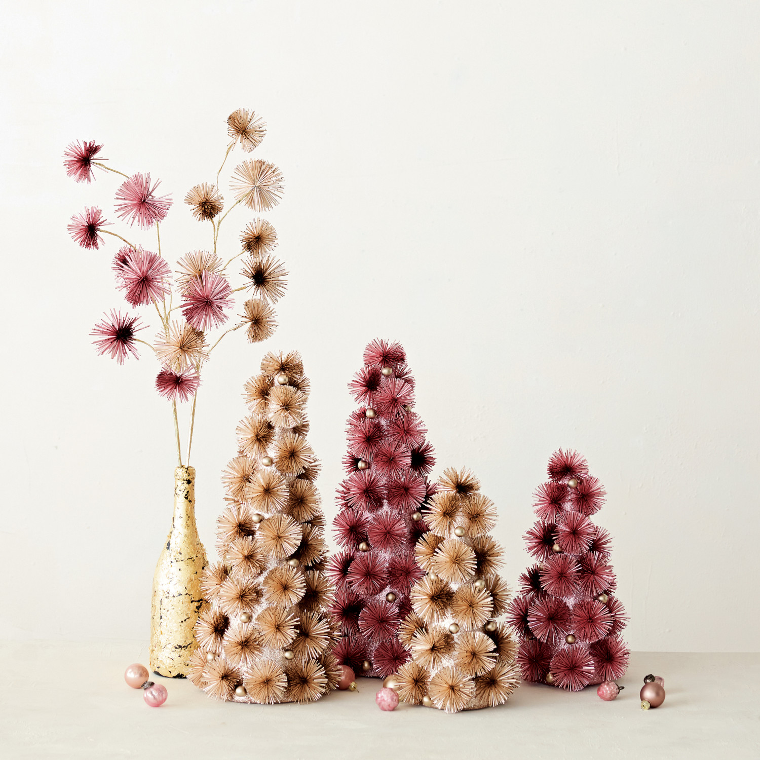 Plastic Tinsel Ball Tree with Glitter & Silver Color Beads, Pink