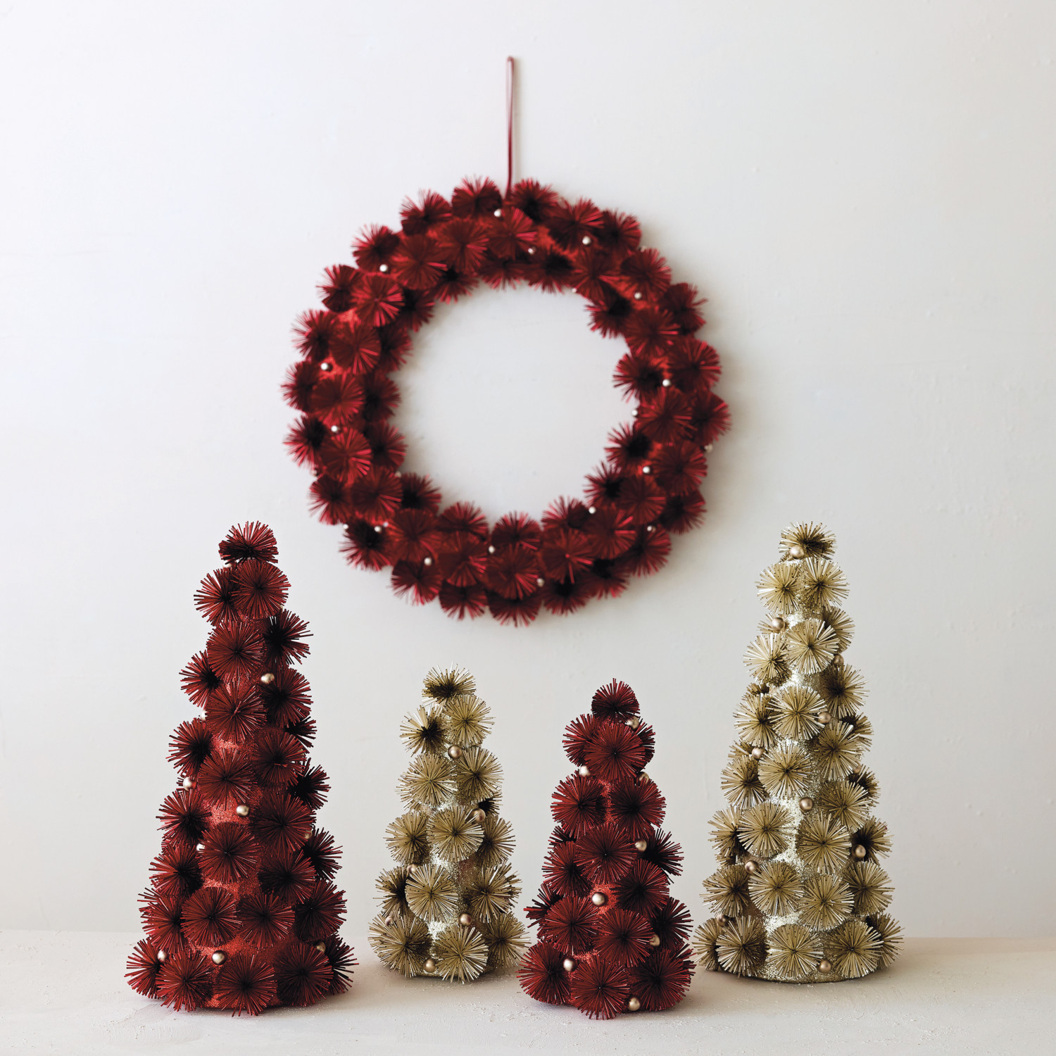 Catalog Name: 7-1/2" Round x 13"H Plastic Tinsel Ball Tree w/ Glitter & Silver Color Beads, Red