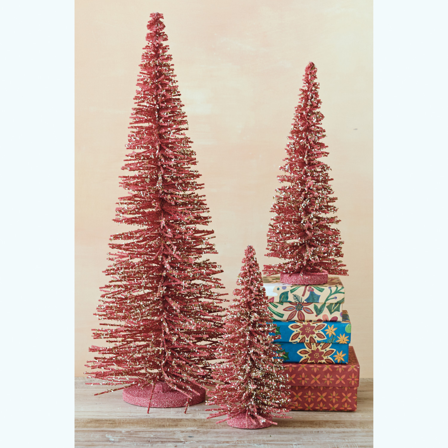 Wood Tree with Mica Flakes & Glitter, Coral Color