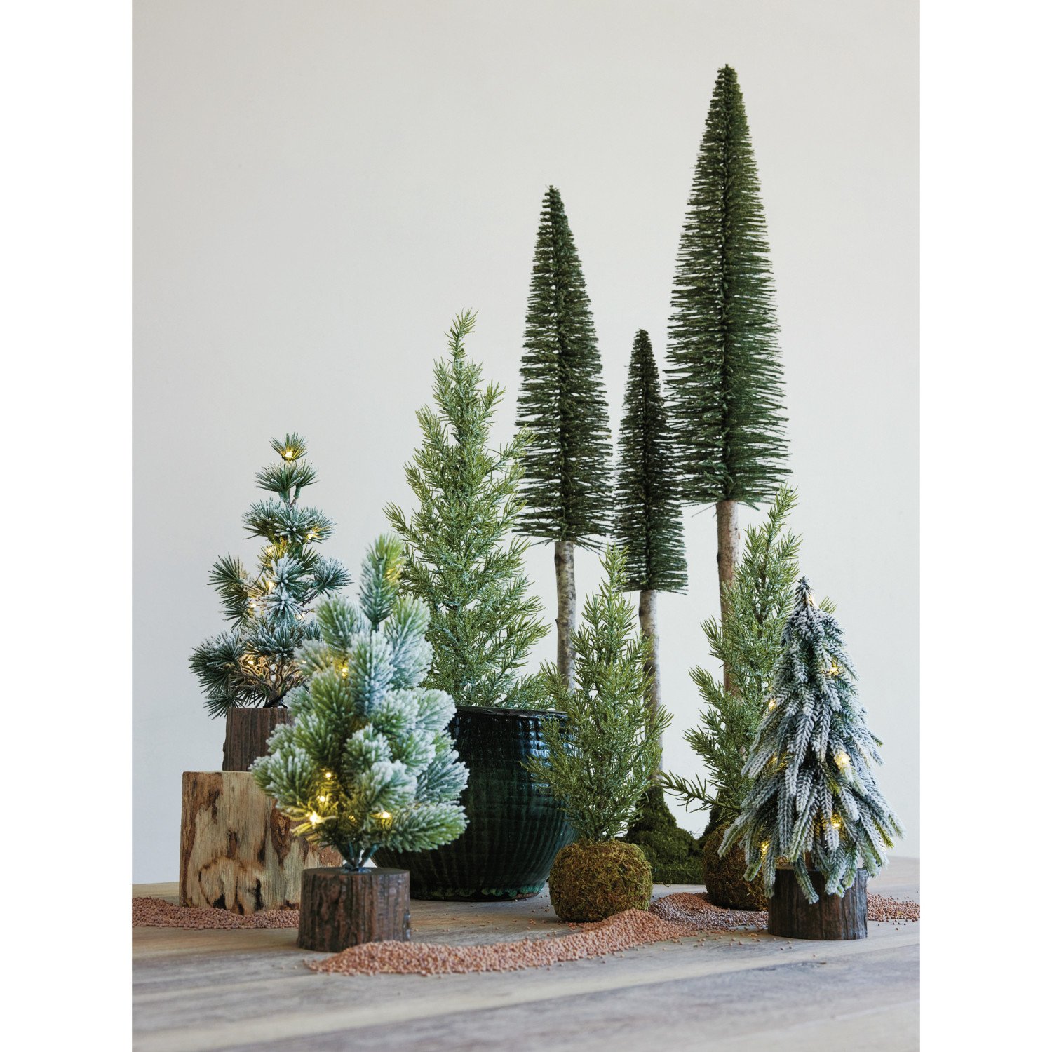 Plastic Bottle Brush Trees with Birch Wood Trunks & Moss Base