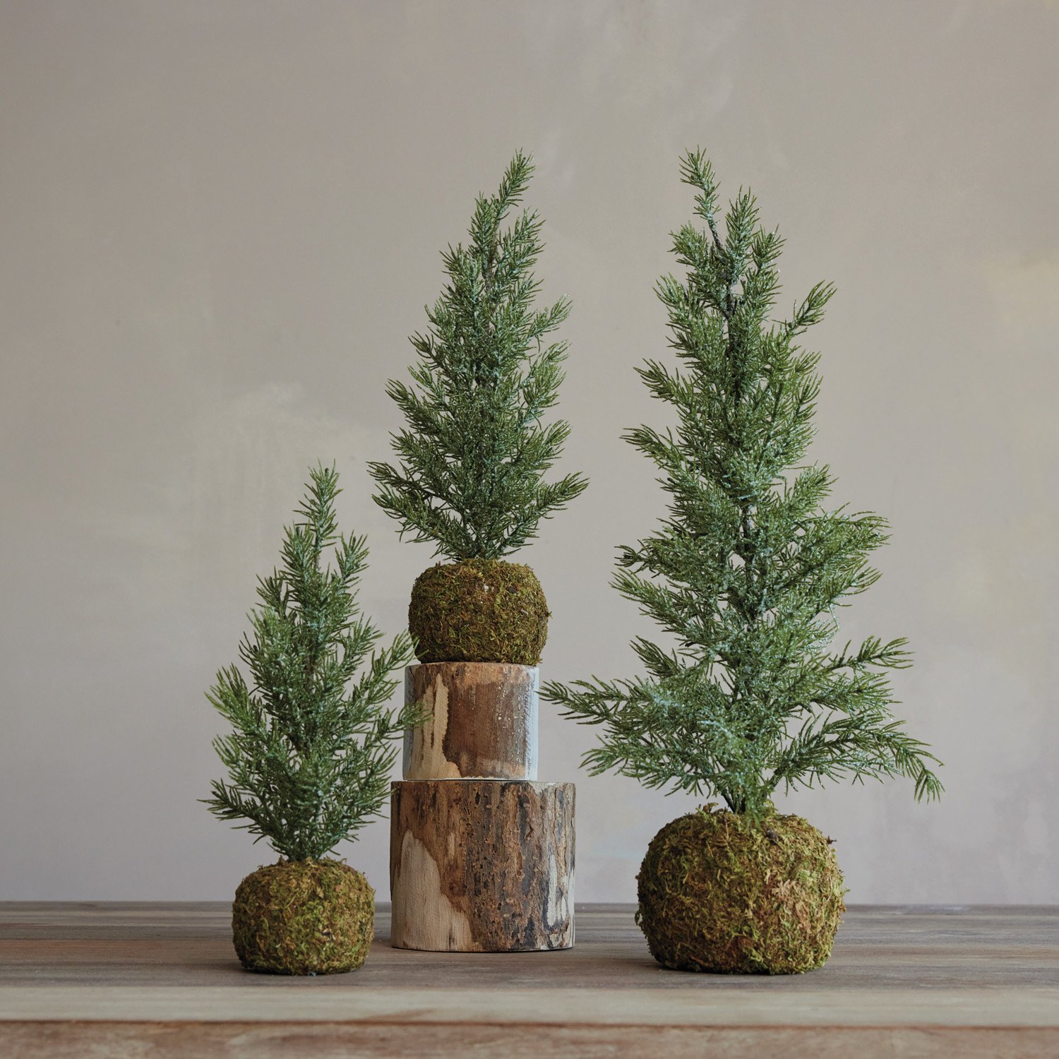 Faux Fir Tree with Moss Ball Base, Frost Finish