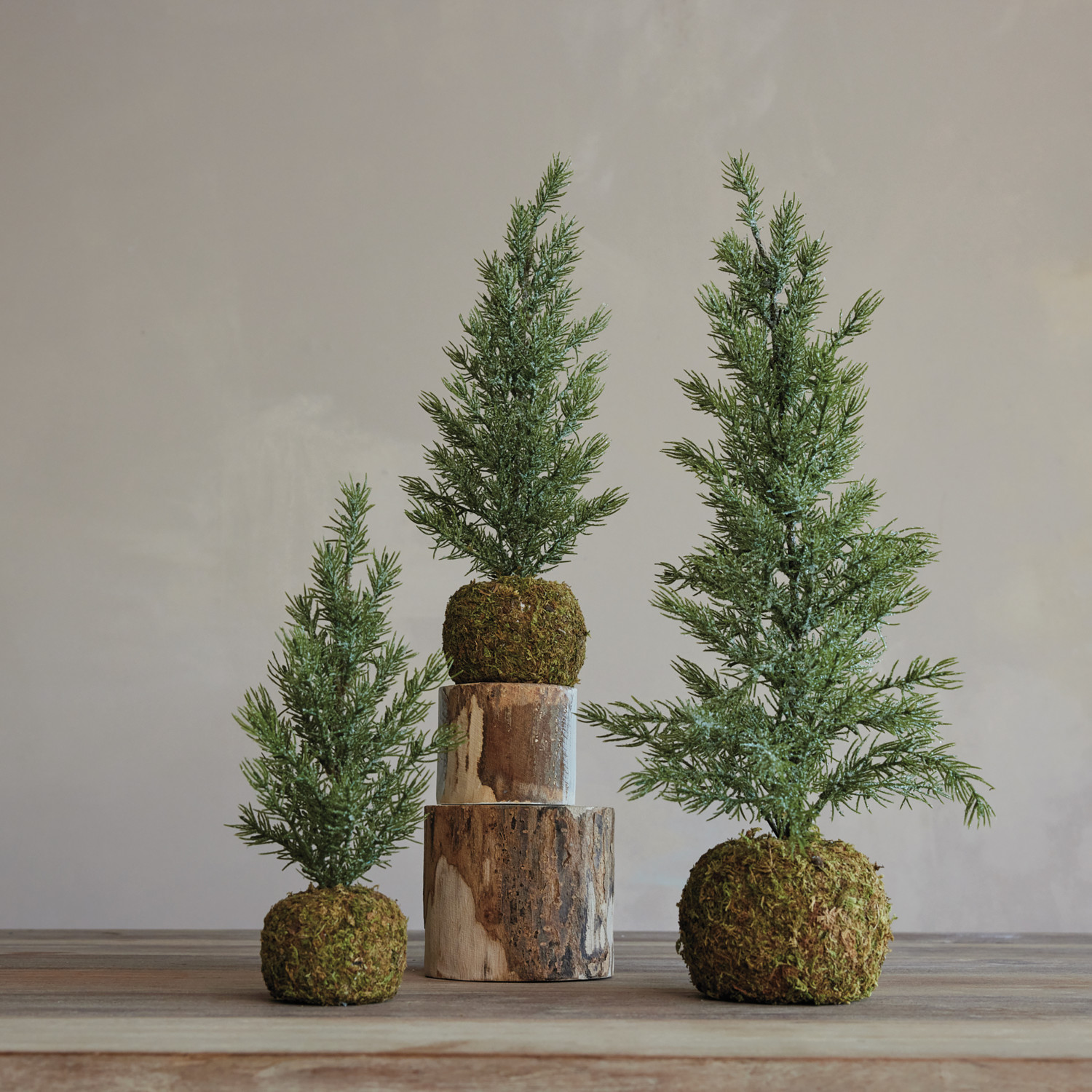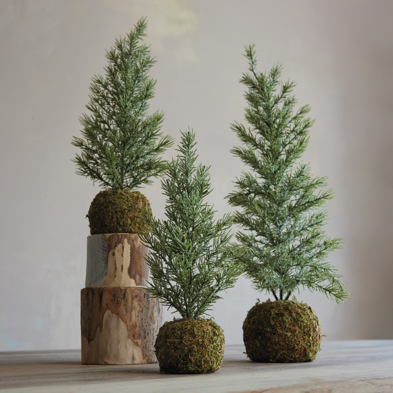 Faux Fir Tree with Moss Ball Base, Frost Finish