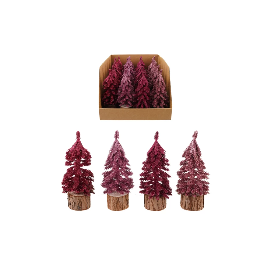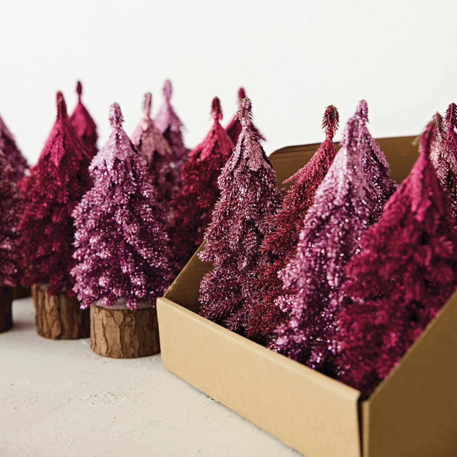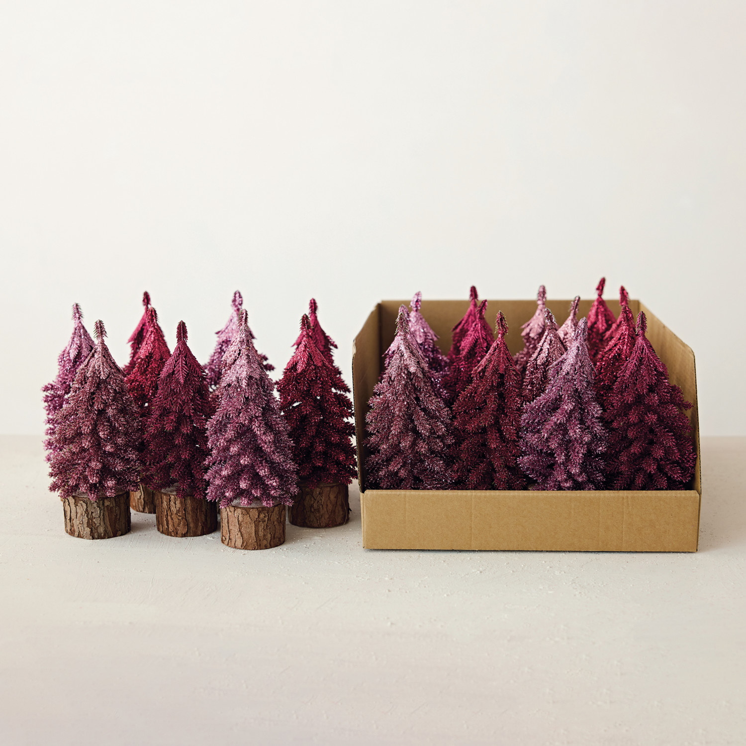 Plastic Trees with Glitter & Wood Base, Pink, Boxed Set of 24