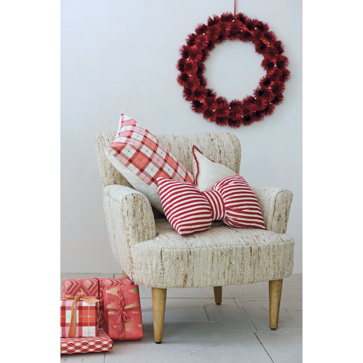 Catalog Name: 24"L x 16"H Cotton Slub Printed Lumbar Pillow w/ Pattern, Red, White & Gold Color