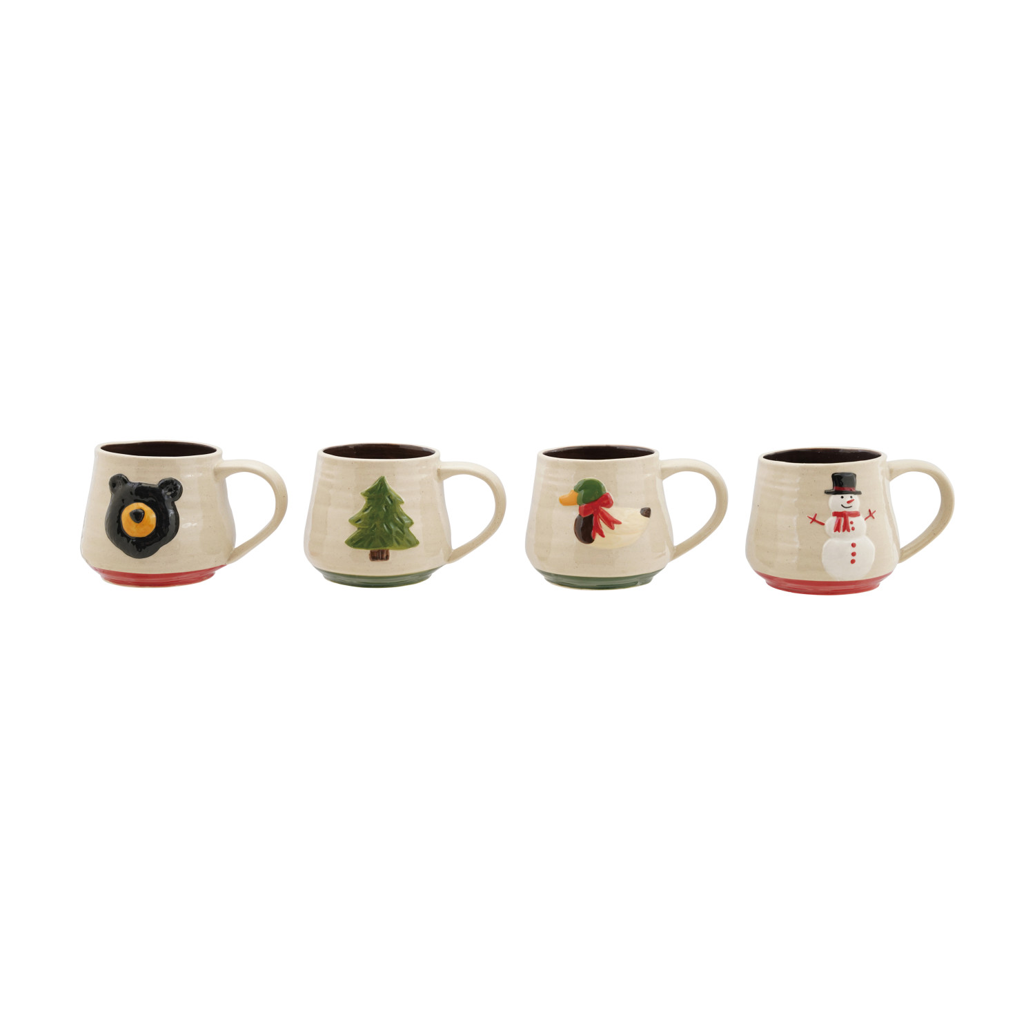 14 oz. Hand-Painted Stoneware Mug with Embossed Icon, 4 Styles ©