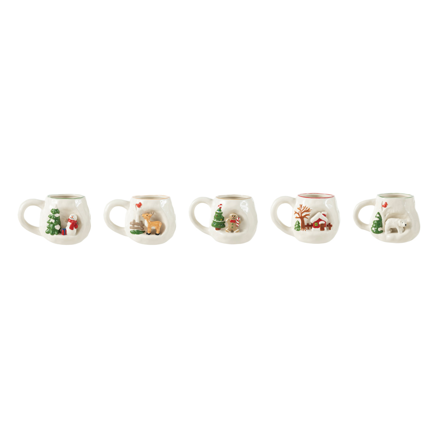 Catalog Name: 4" Round x 3-1/2"H 14 oz. Hand-Painted Stoneware Mug w/ 3D Scene, Multi Color, 5 Styles