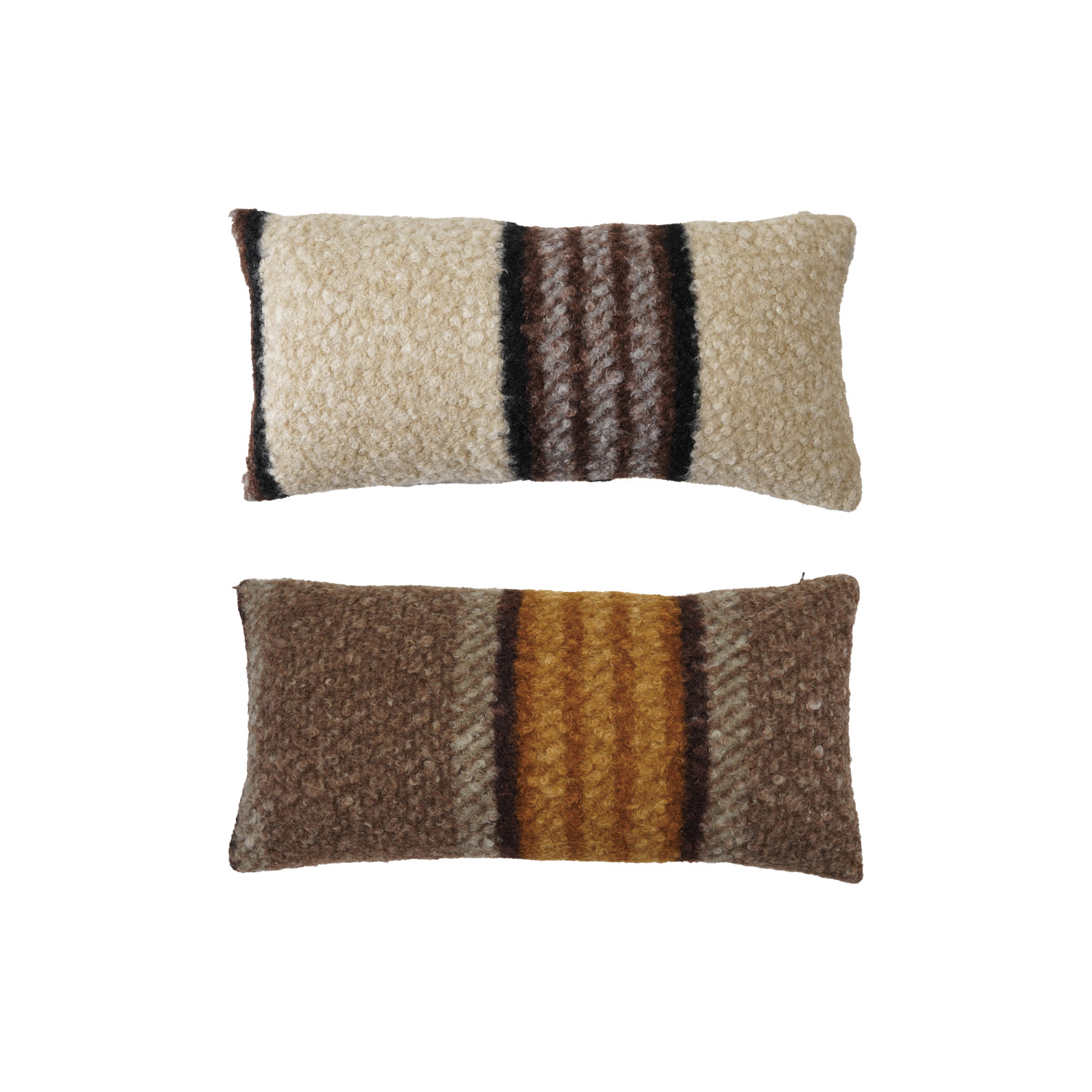 Catalog Name: 19-1/2"L x 10"W Fabric Faux Sherpa Lumbar Pillow w/ Stripes, Multi Color, 2 Styles