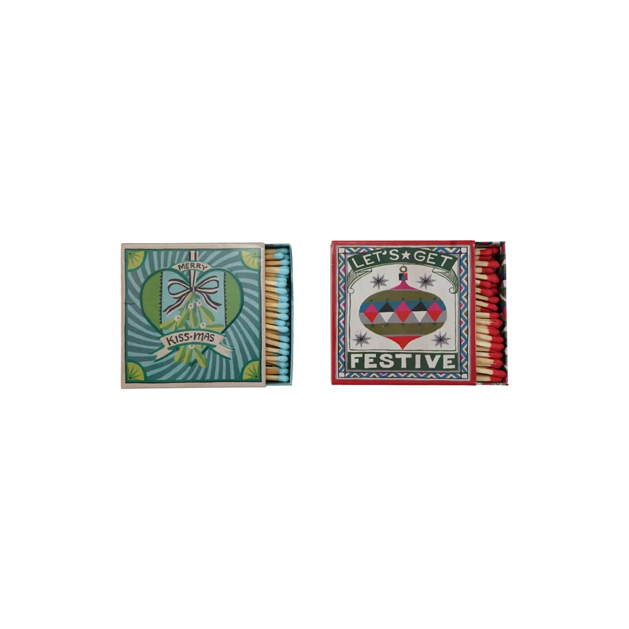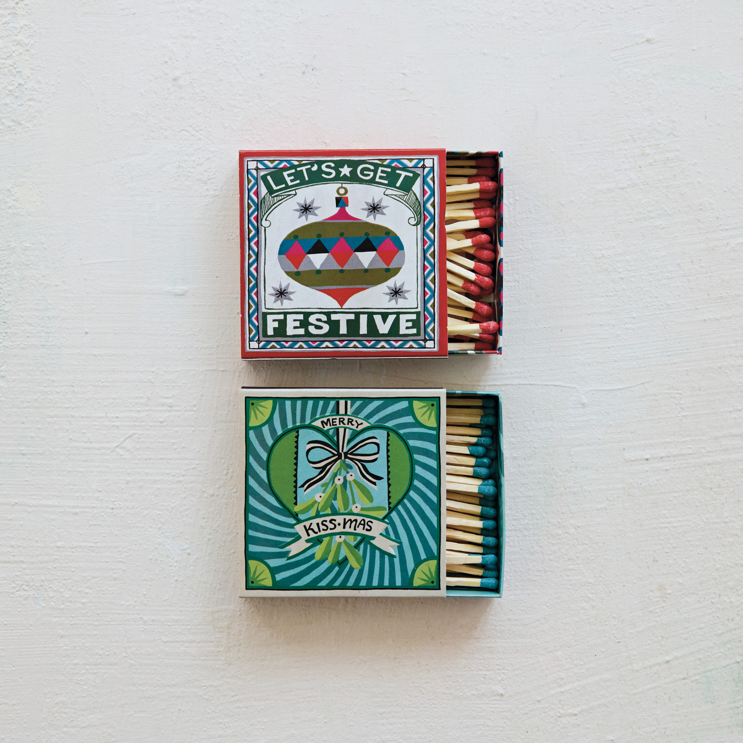 Safety Matches in Embossed Matchbox with Holiday Saying & Design, 2 Styles ©