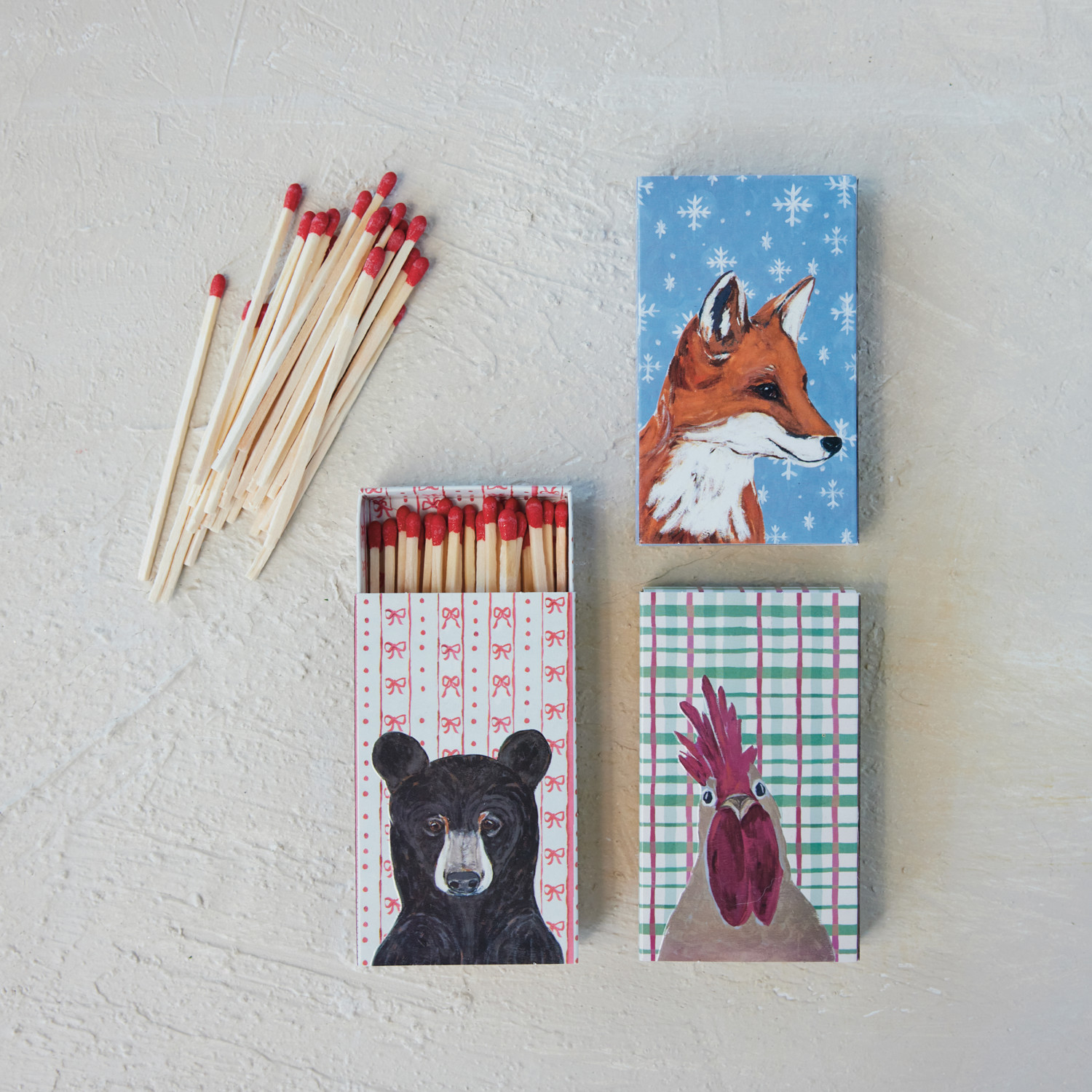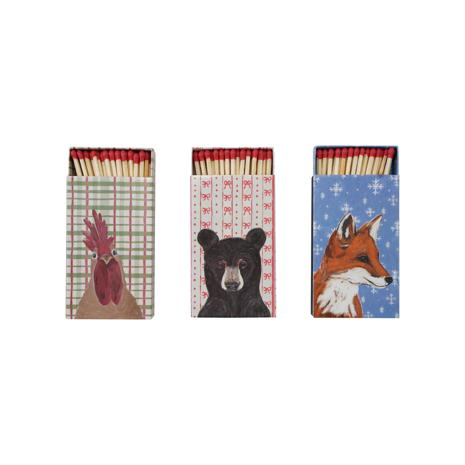 Safety Matches in Embossed Matchbox with Holiday Pattern & Animal, 3 Styles ©