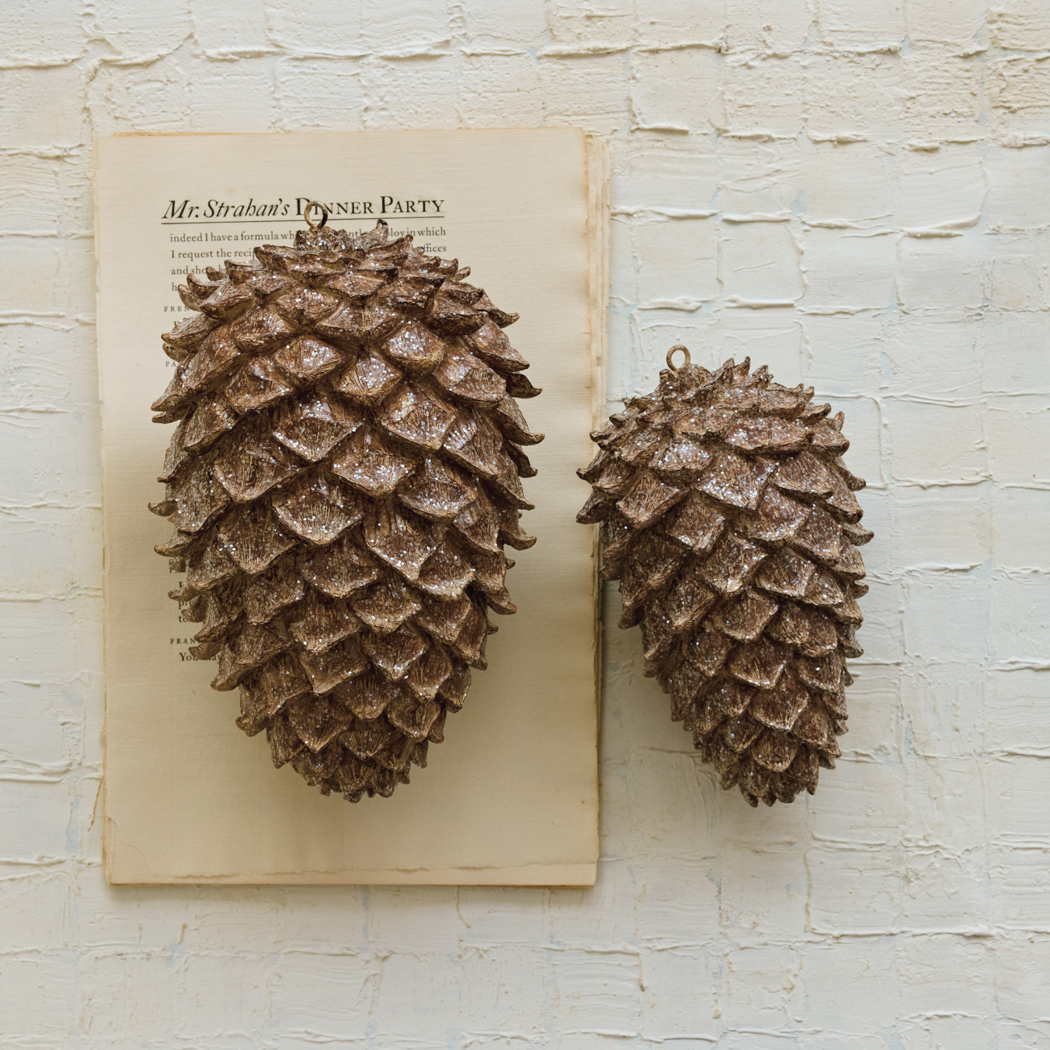 Catalog Name: 7" Round x 10-1/2"H Resin Pinecone w/ Glitter, Brown