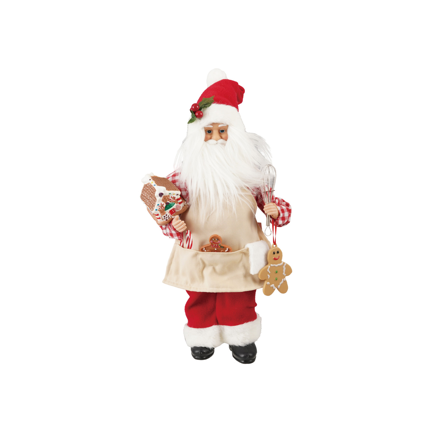 Catalog Name: 11"L x 5"W x 18"H Fabric & Faux Fur Santa w/ Apron & Gingerbread Cookies, Multi Color