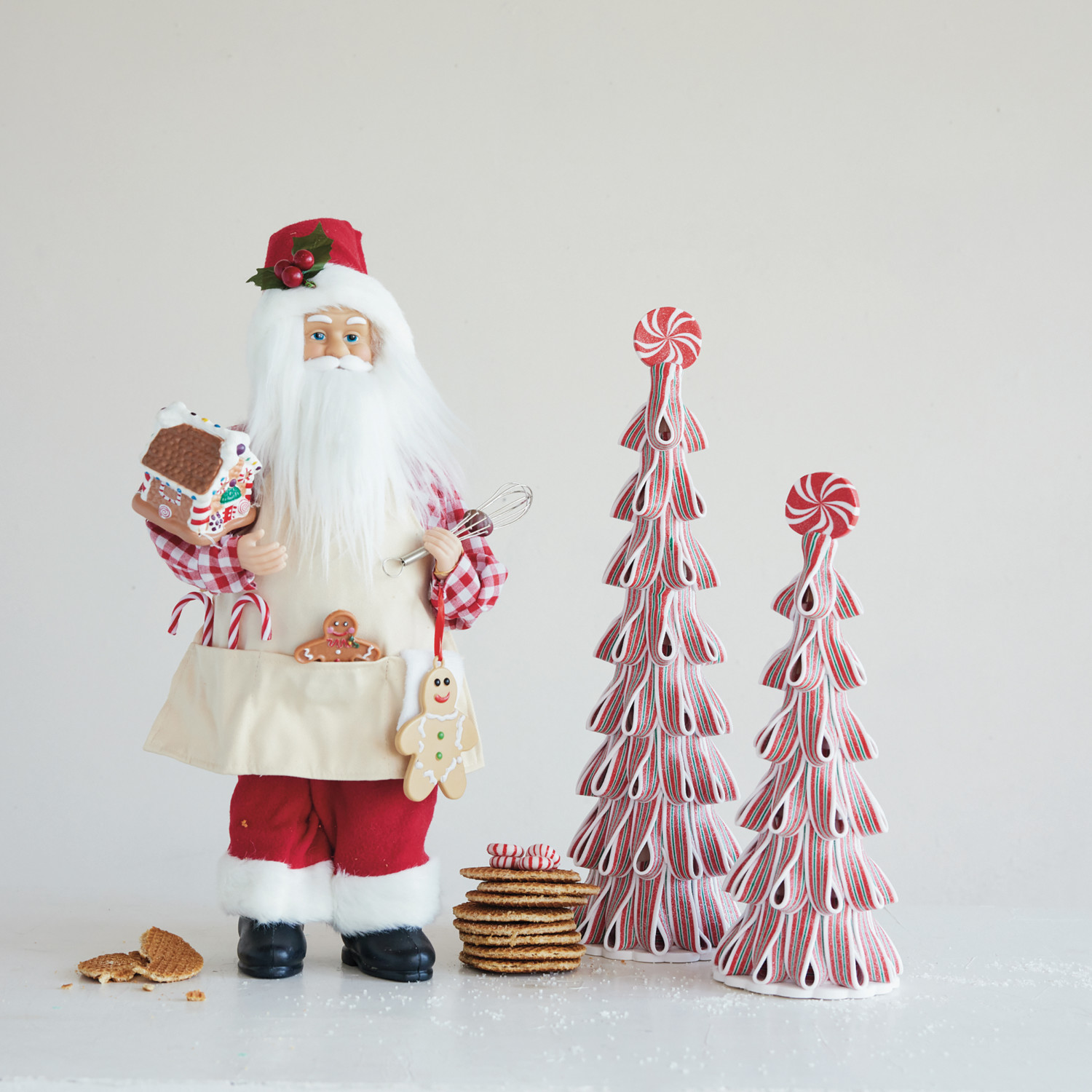 Fabric & Faux Fur Santa with Apron & Gingerbread Cookies