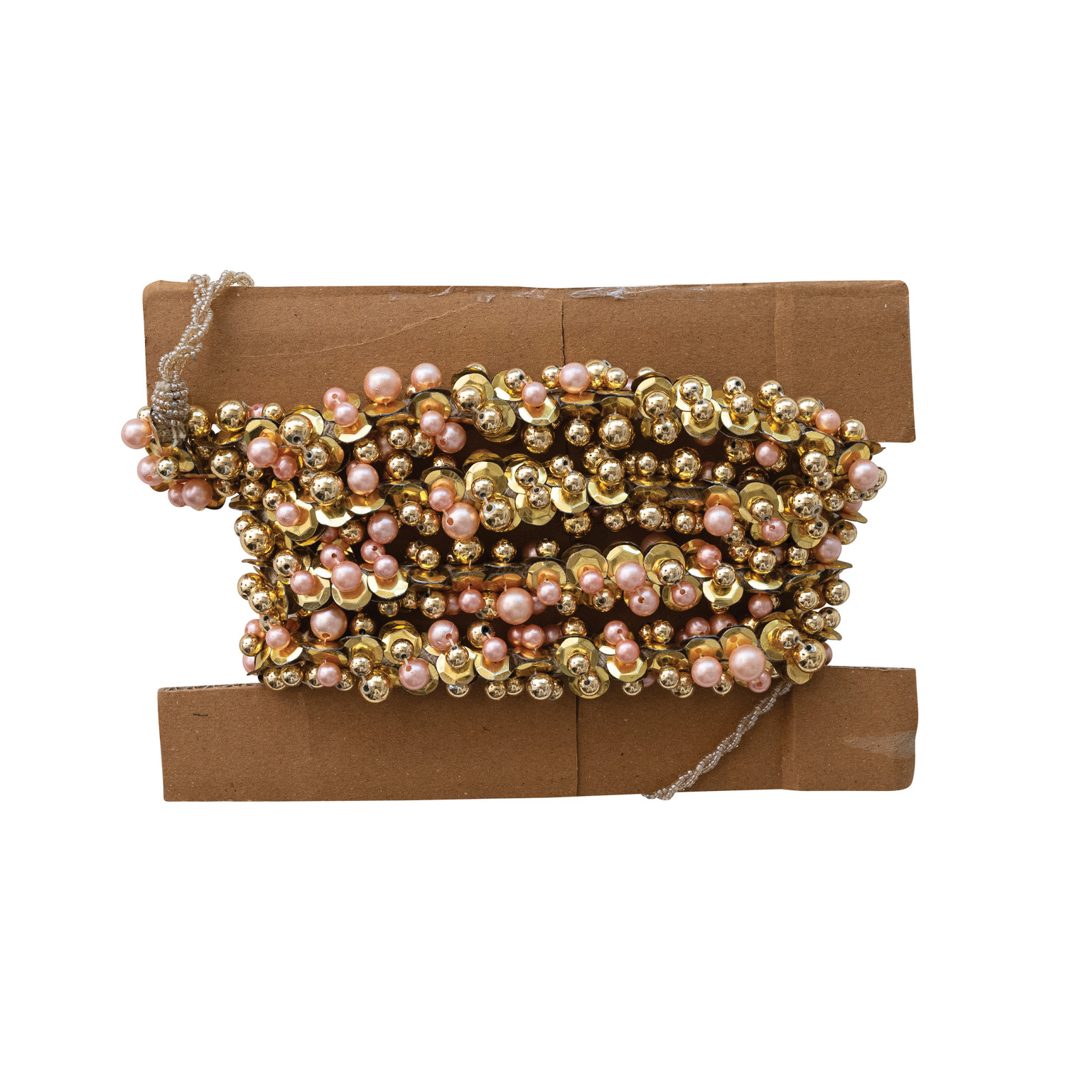 Catalog Name: 72"L x 1"H Faux Pearl & Glass Beaded Garland, Gold Finish & Pink