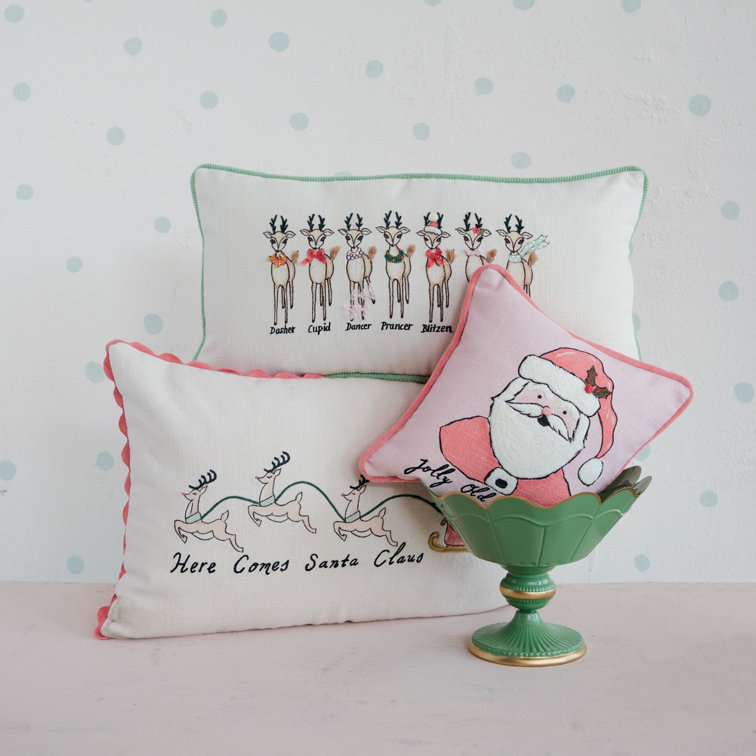 12" Square Cotton Printed Pillow with Santa, Piping & Velvet Back "Jolly Old St. Nick" ©