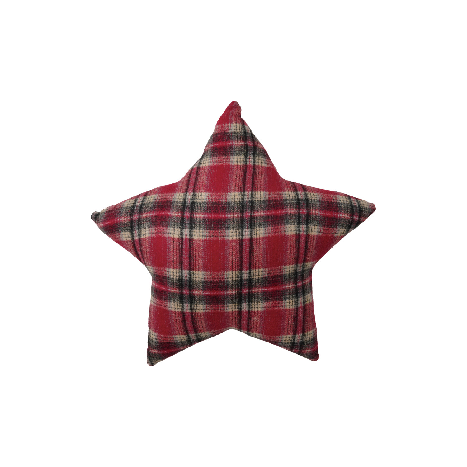 Fabric Flannel Star Shaped Pillow with Plaid Pattern