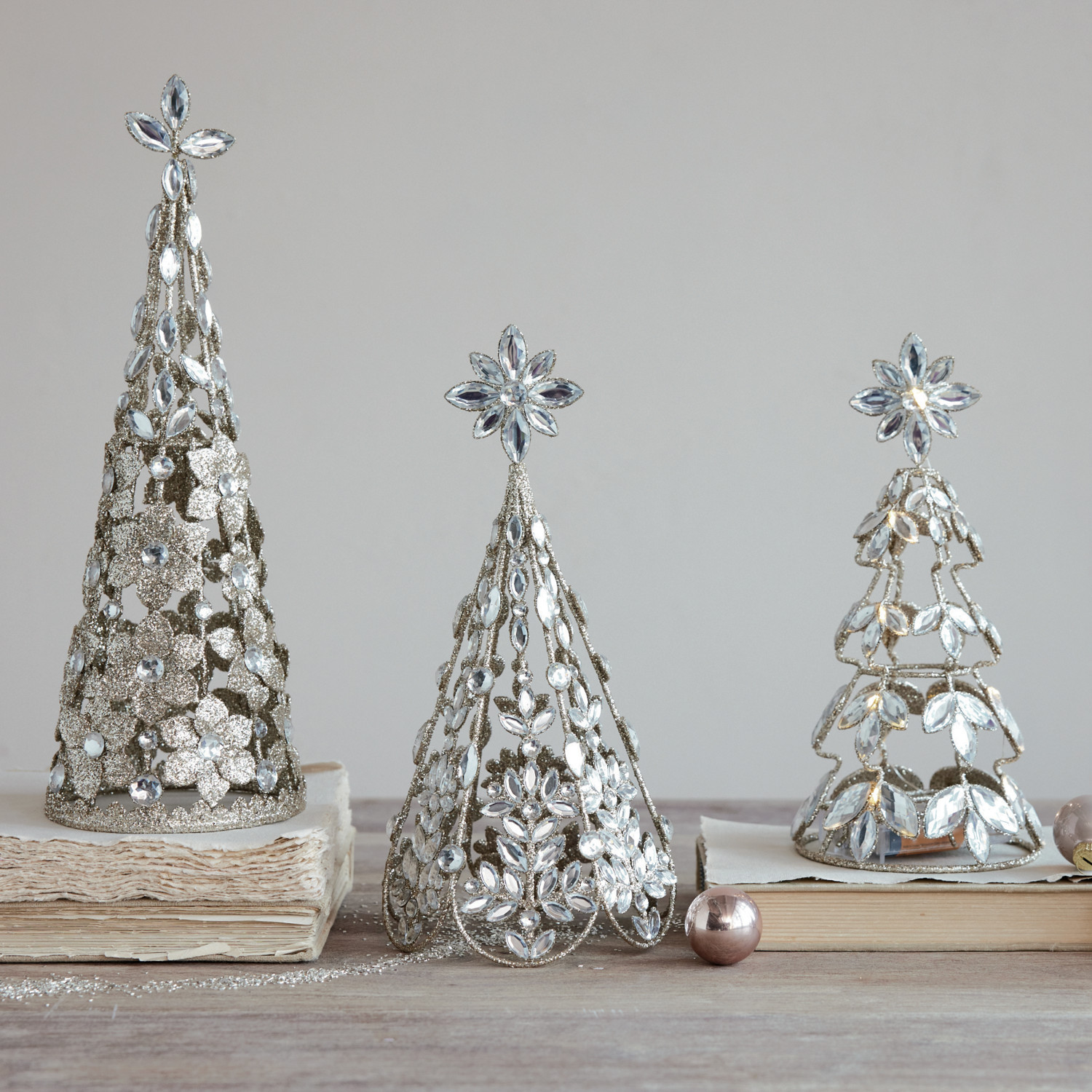 Catalog Name: 5-1/4" Round x 11-1/2"H Metal Tree w/ Acrylic Jewels & Glitter, Champagne Finish