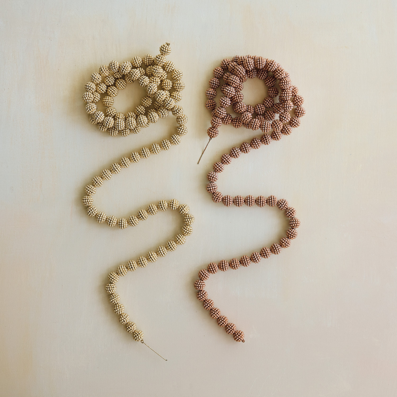 Catalog Name: 72"L x 1"H Plastic Beaded Ball Garland, Gold Finish