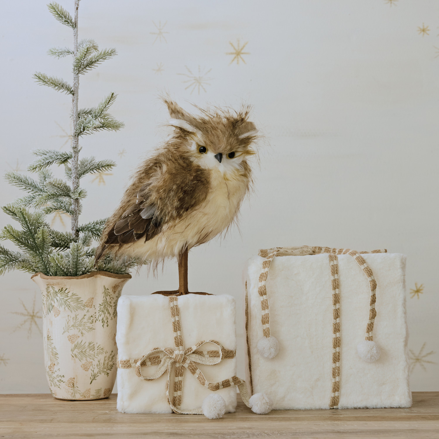 Catalog Name: 10"L x 6-3/4"W x 13"H Faux Fur Owl, Brown & White