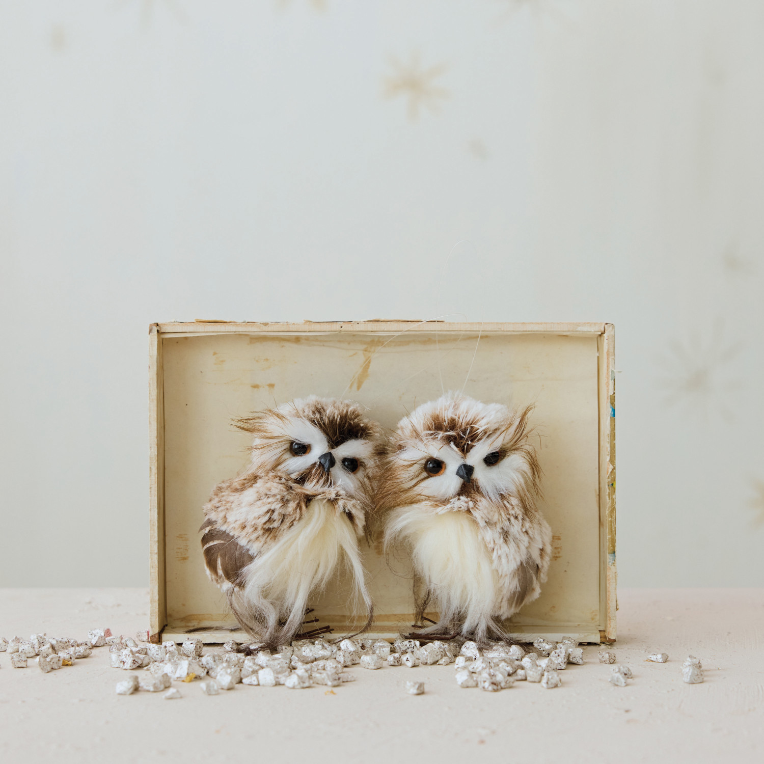 Catalog Name: 4-1/4"H Faux Fur Owl, Brown & White, 2 Styles