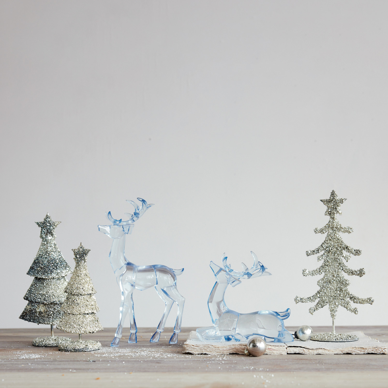 Metal Tree with Mica Flakes & Star, Antique Silver Finish