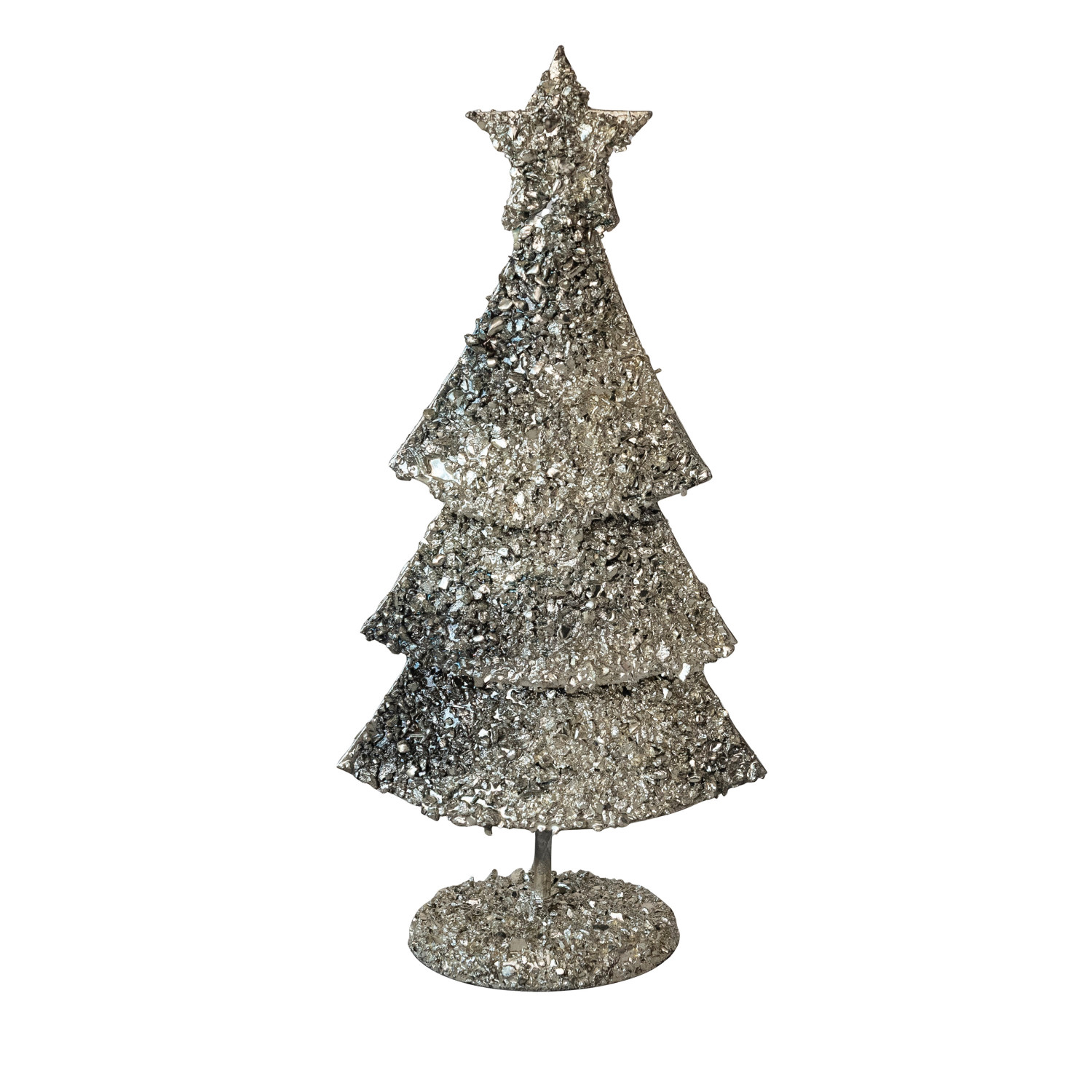 Catalog Name: 5"L x 3"W x 10-3/4"H Metal Tree w/ Mica Flakes & Star, Antique Silver Finish