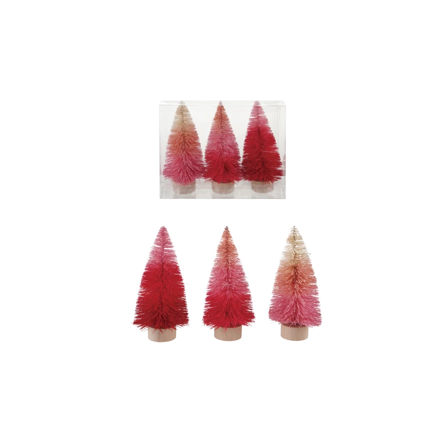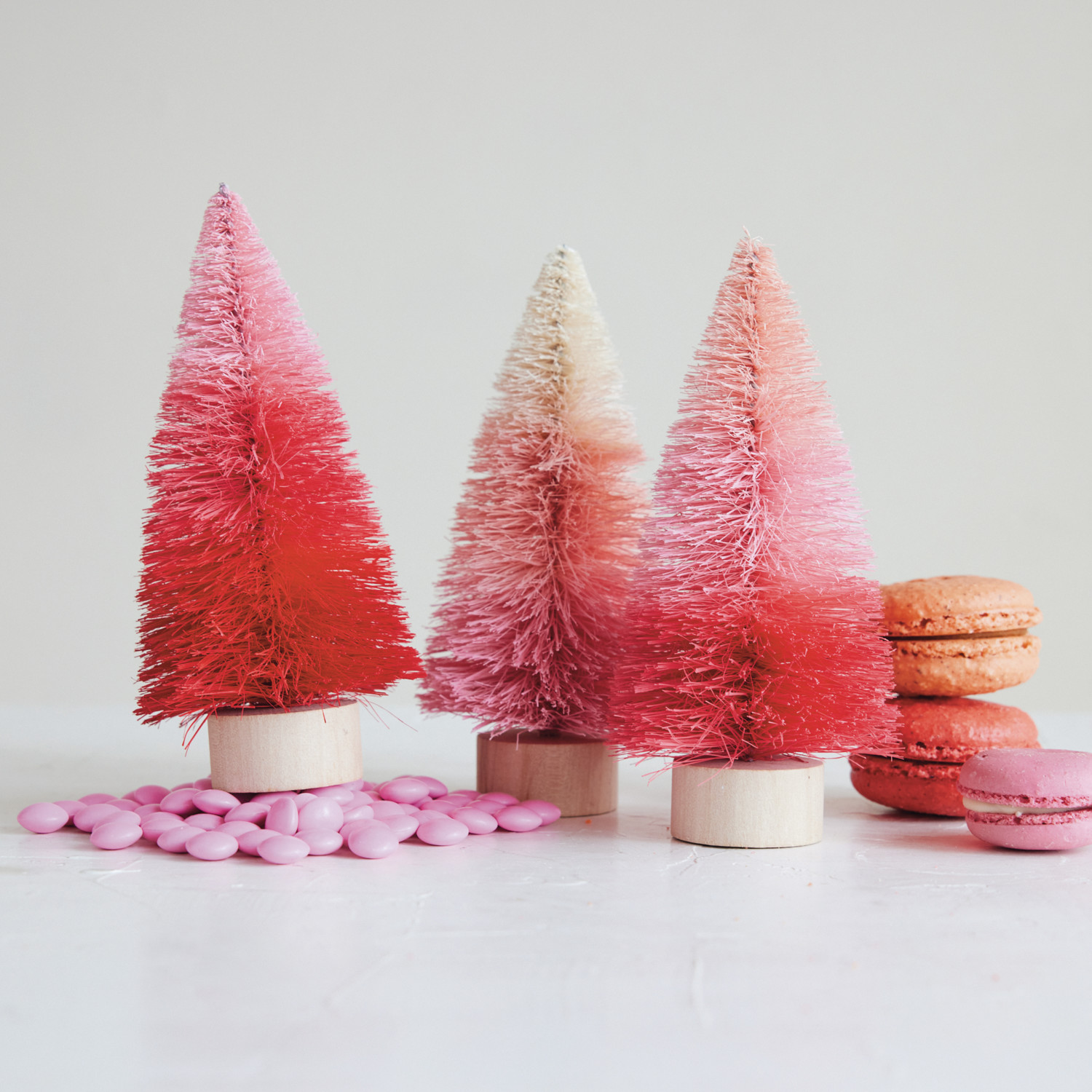 Sisal Bottle Brush Trees with Wood Bases, Pink Ombre, Boxed Set of 3
