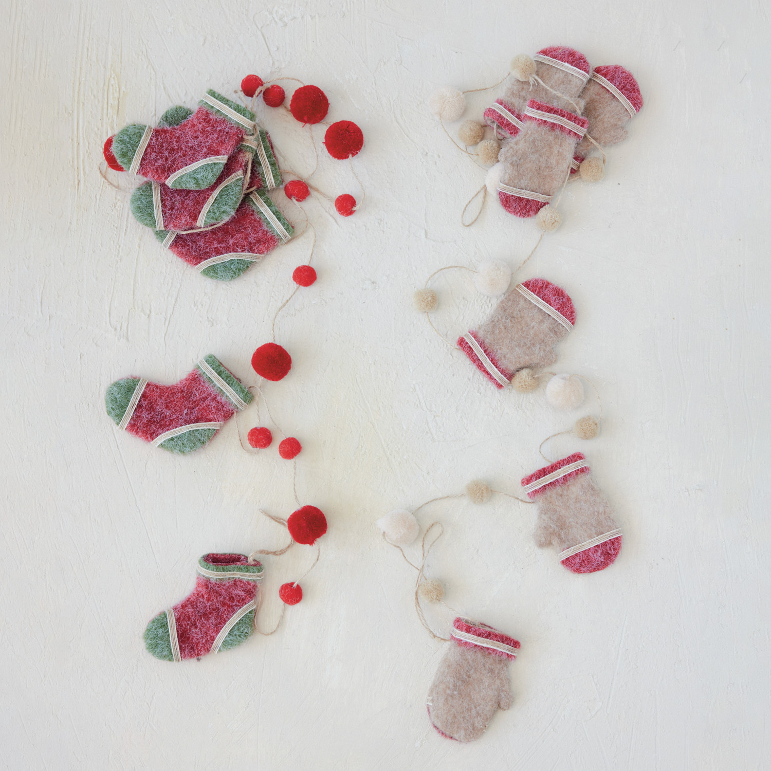 Felt Gloves Garland with Pom Poms