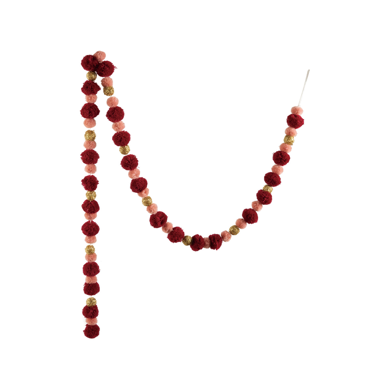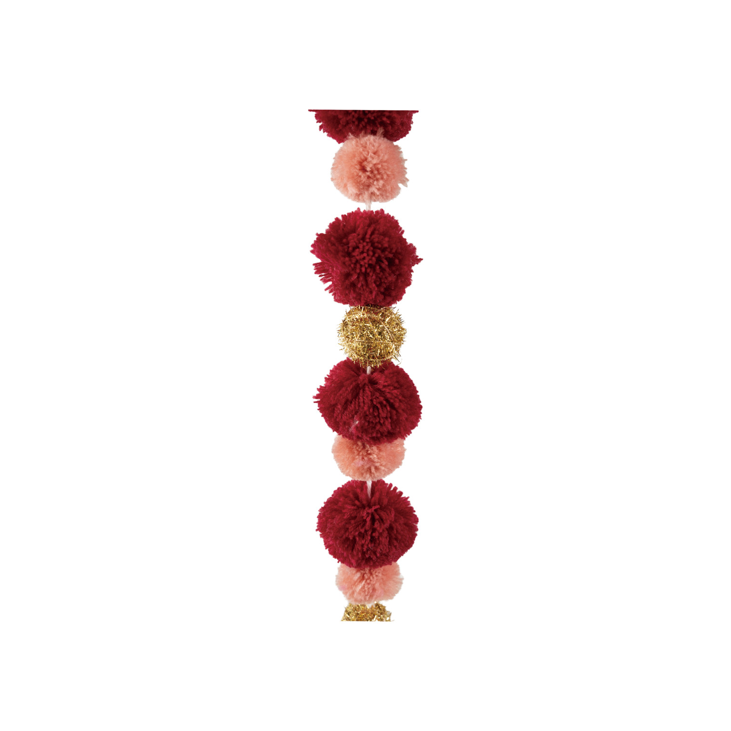 Catalog Name: 72"L x 1-1/2"H Fabric Pom Pom Garland, Gold Finish, Burgundy & Pink