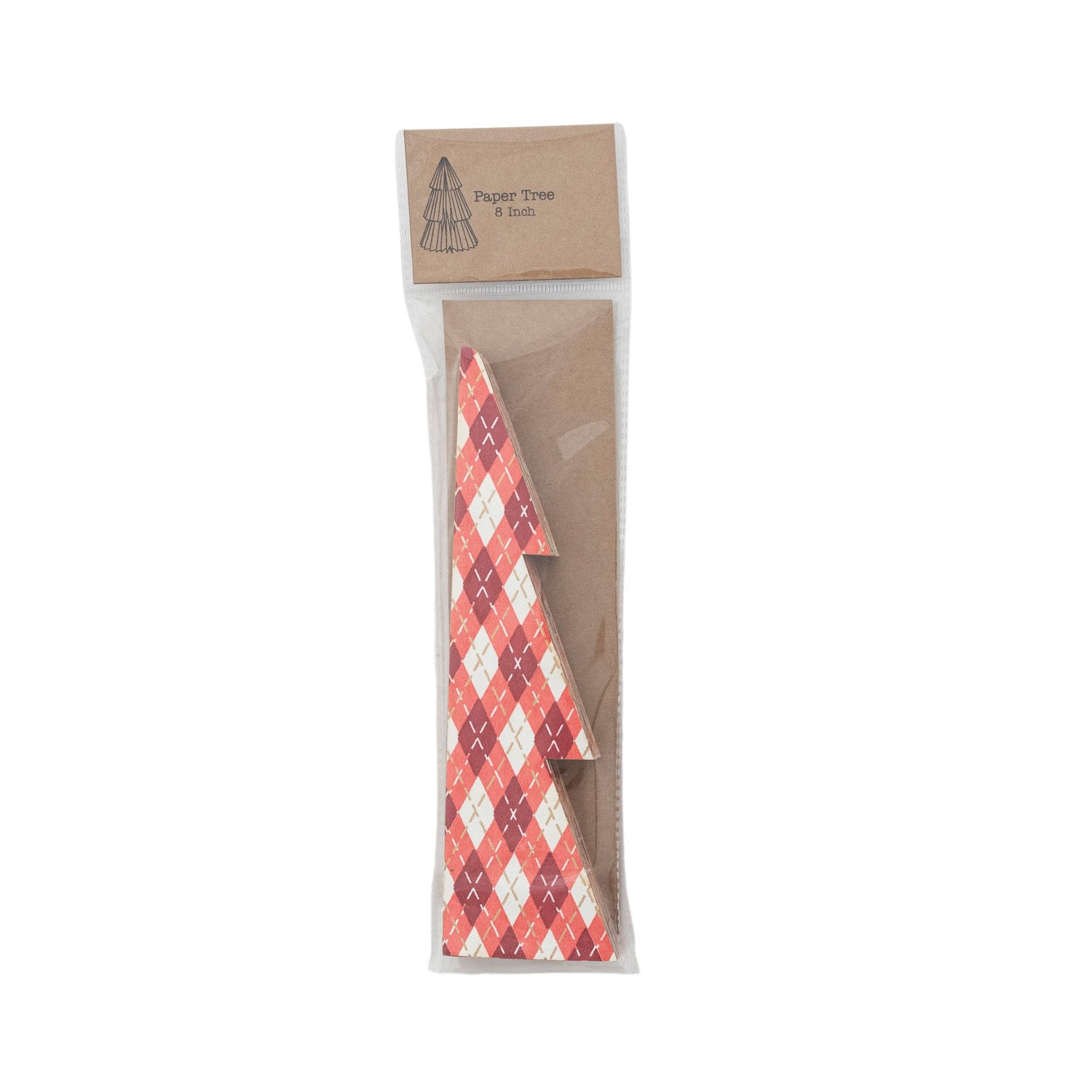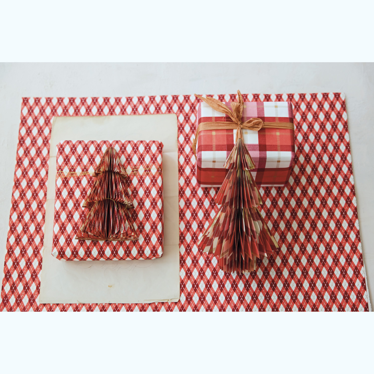 Handmade Printed Recycled Paper Folding Honeycomb Tree with Plaid Pattern, Red