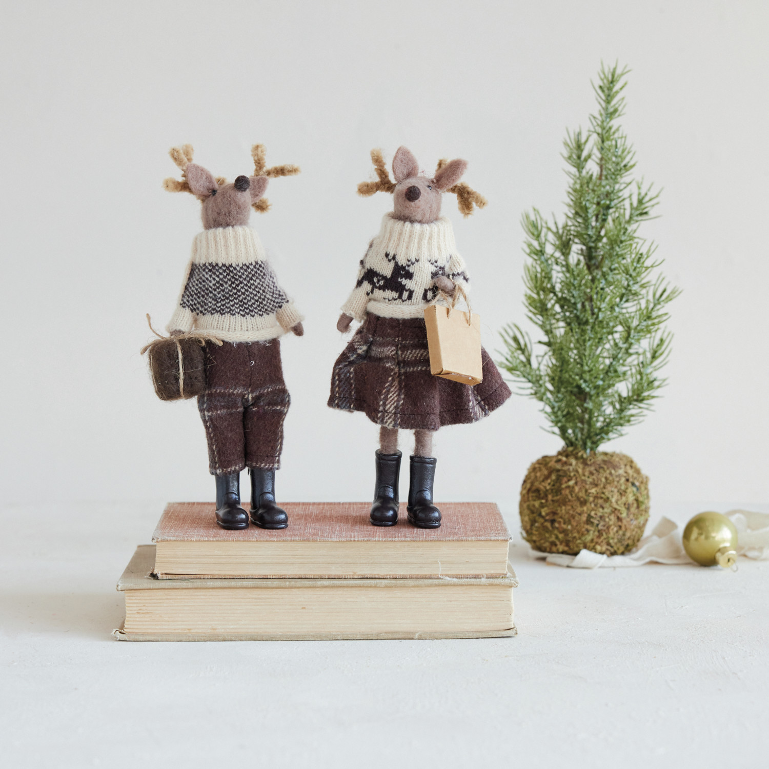 Wool Felt Deer in Clothes & Resin Boots with Present, 2 Styles