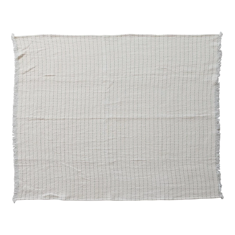 Throw with Hand-Embroidered Kantha Stitch & Frayed Edges