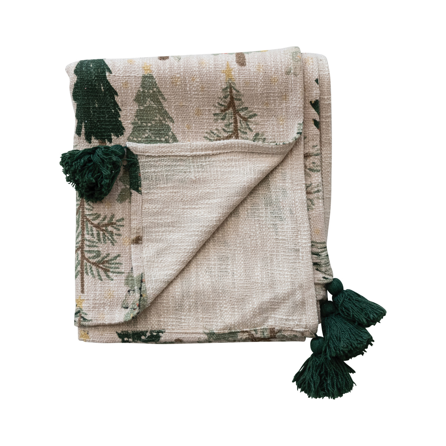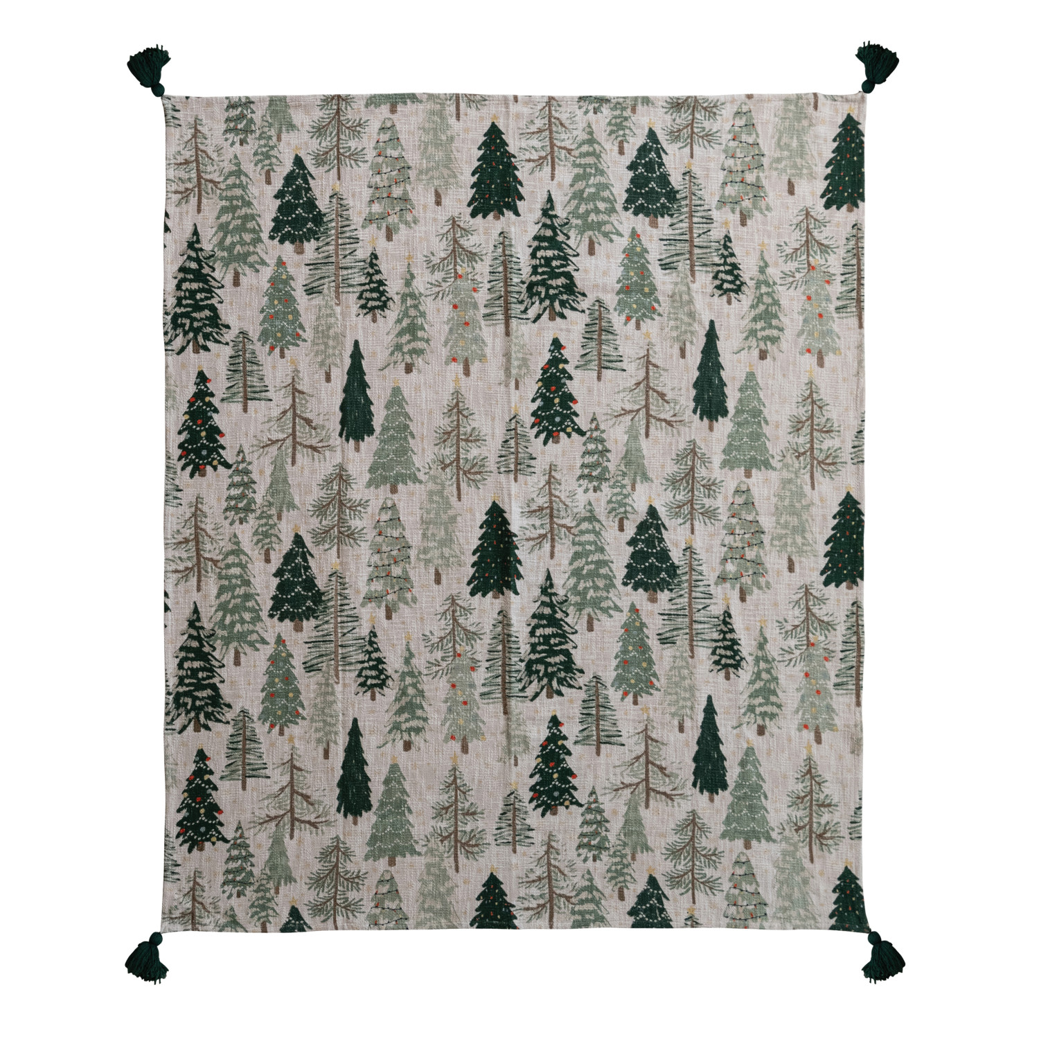 Cotton Printed Throw with Tree Pattern & Tassels