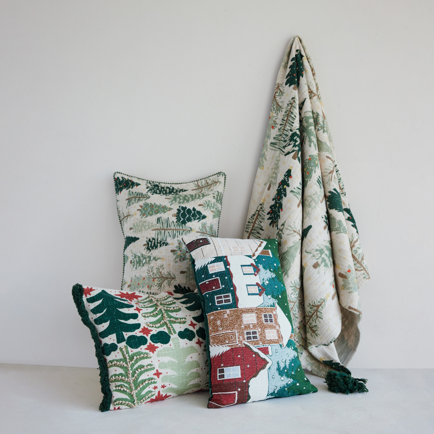 Catalog Name: 60"L x 50"W Cotton Printed Throw w/ Tree Pattern & Tassels, Multi Color