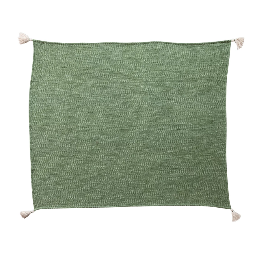 Catalog Name: 60"L x 50"W Stonewashed Woven Cotton Blend Slub Throw w/ Tassels, Green & Cream Color
