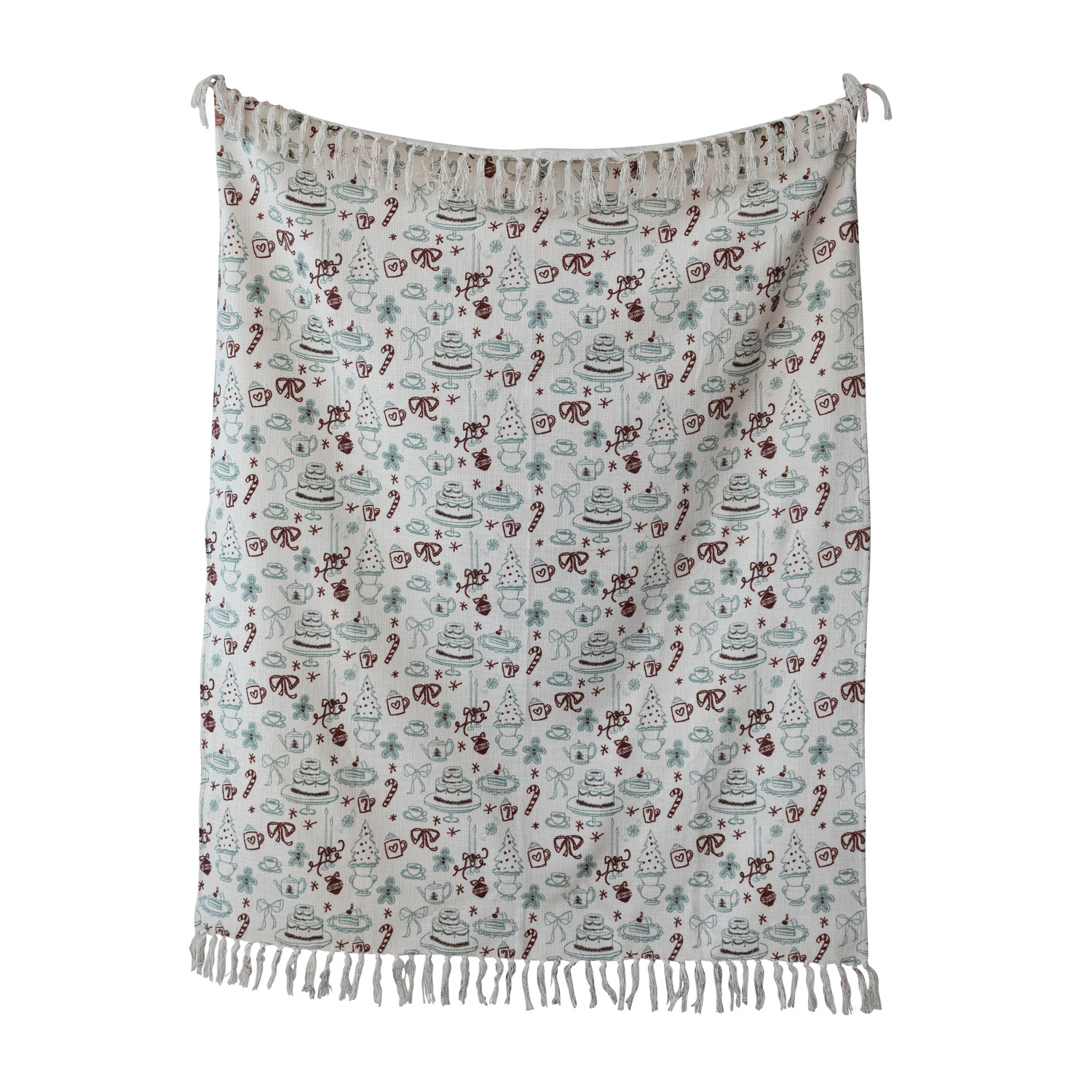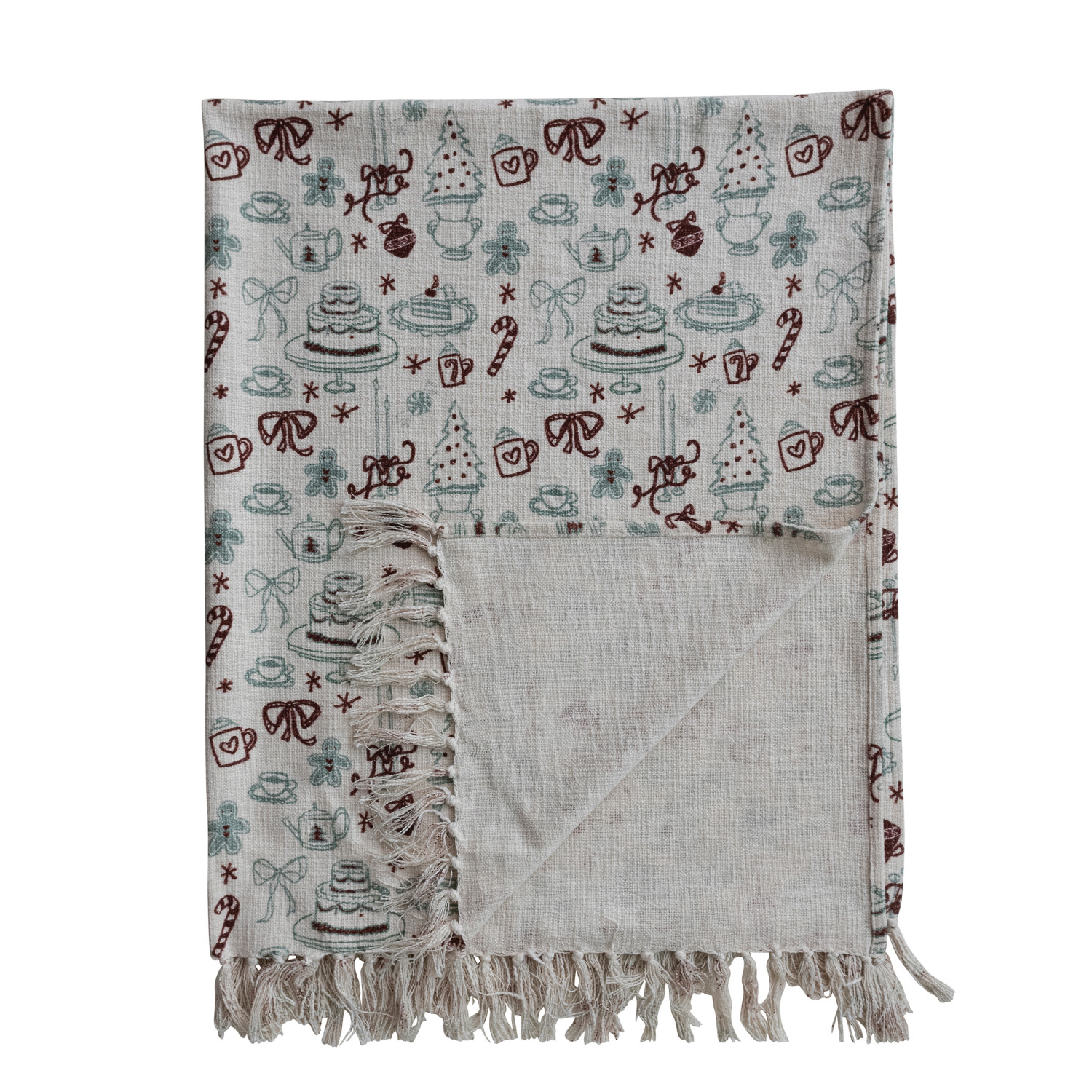 Cotton Slub Printed Throw with Holiday Sweets Pattern & Fringe ©