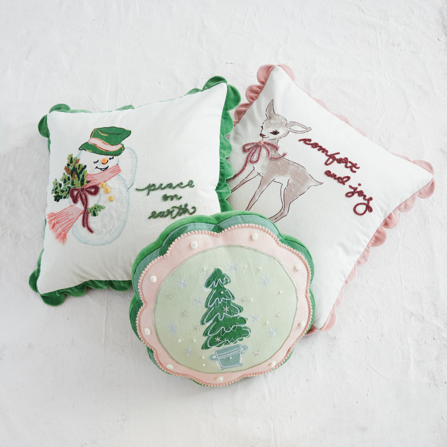 Catalog Name: 60"L x 50"W Cotton Slub Printed Throw w/ Holiday Sweets Pattern & Fringe, Multi Color ©