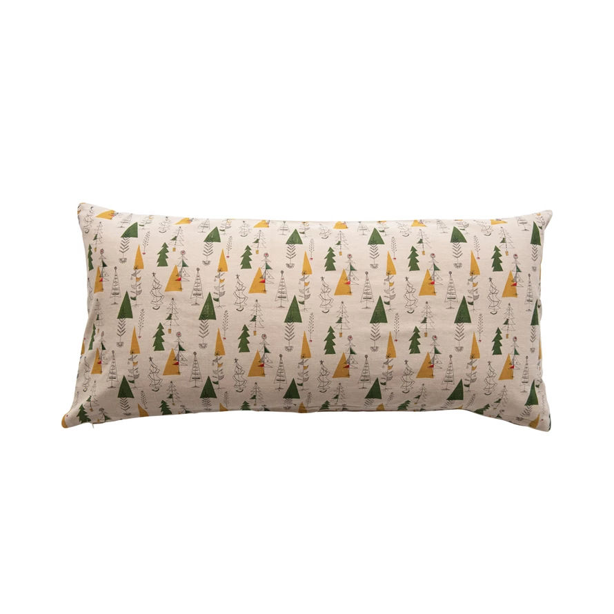 Catalog Name: 38"L x 18"H Cotton Chambray Lumbar Pillow with Christmas Tree Pattern, Multi Color