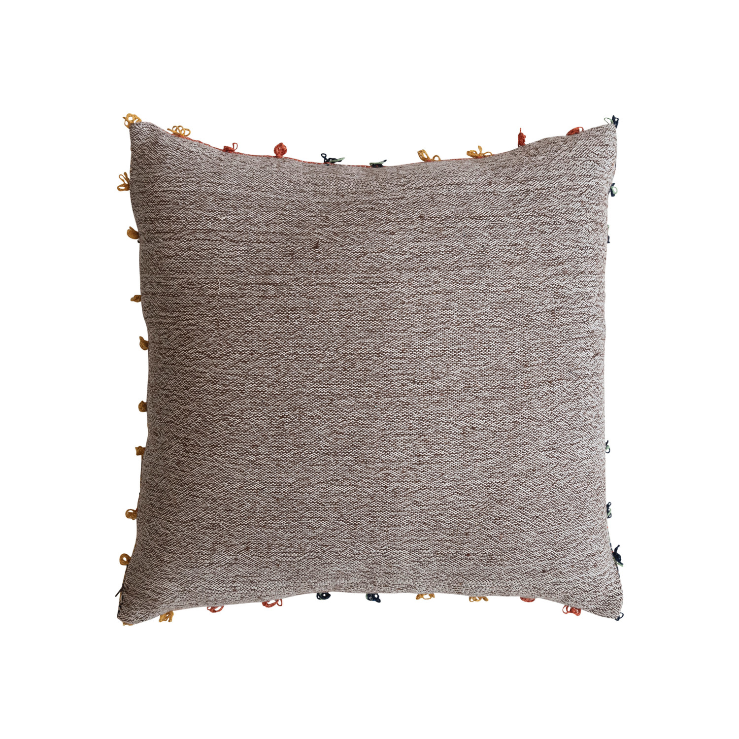 Catalog Name: 18" Square Woven Cotton Blend Pillow w/ Knots, Multi Color Plaid