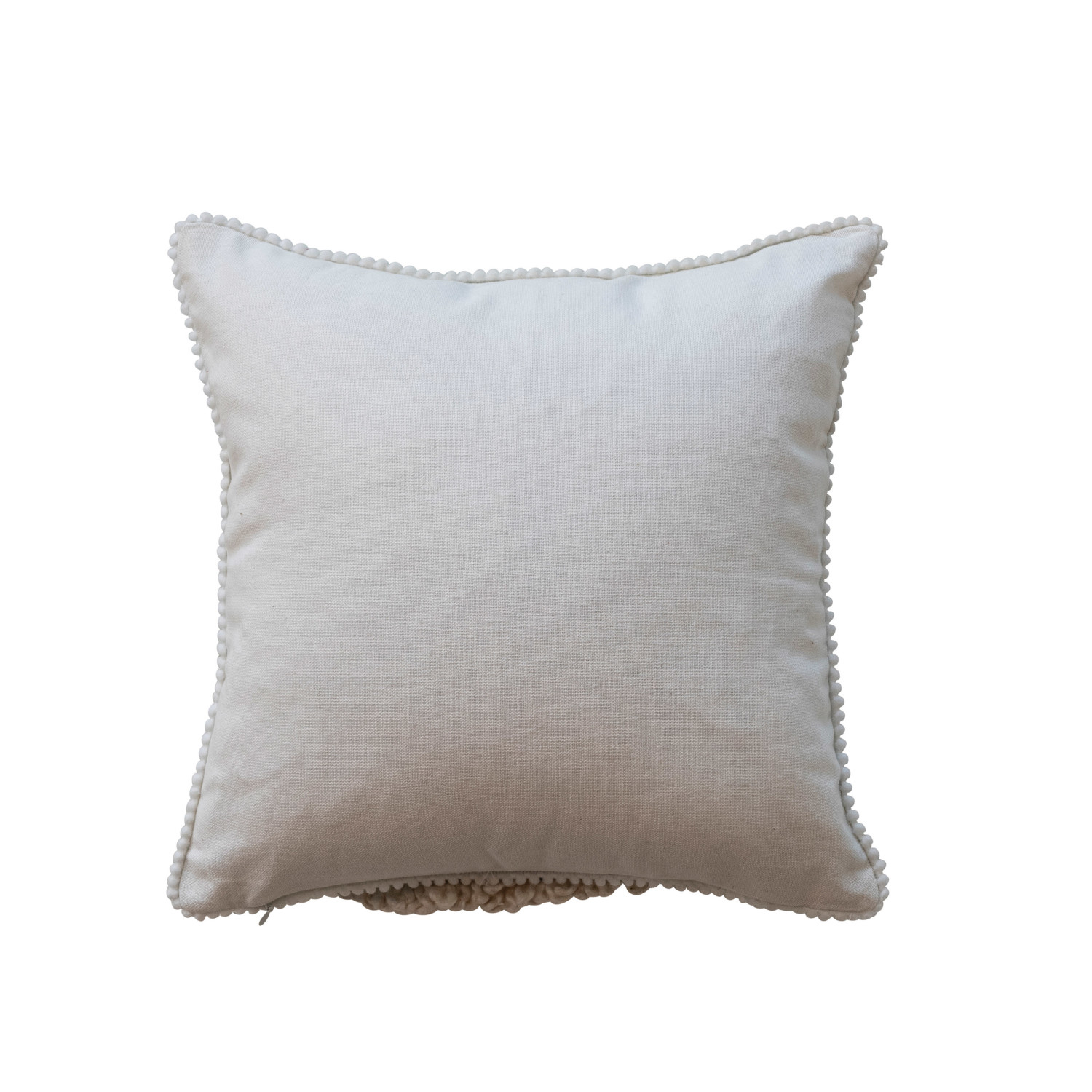 12" Square Cotton Blend Printed Pillow w/ Fringe & Pom Pom Trim