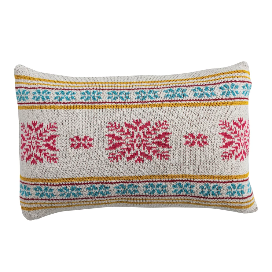 Catalog Name: 24"L x 16"H Cotton Knit Lumbar Pillow w/ Snowflake Pattern, Multi Color