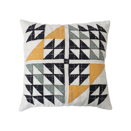 18" Square Pillow with Hand-Embroidered Kantha Stitch, 3 Styles ©