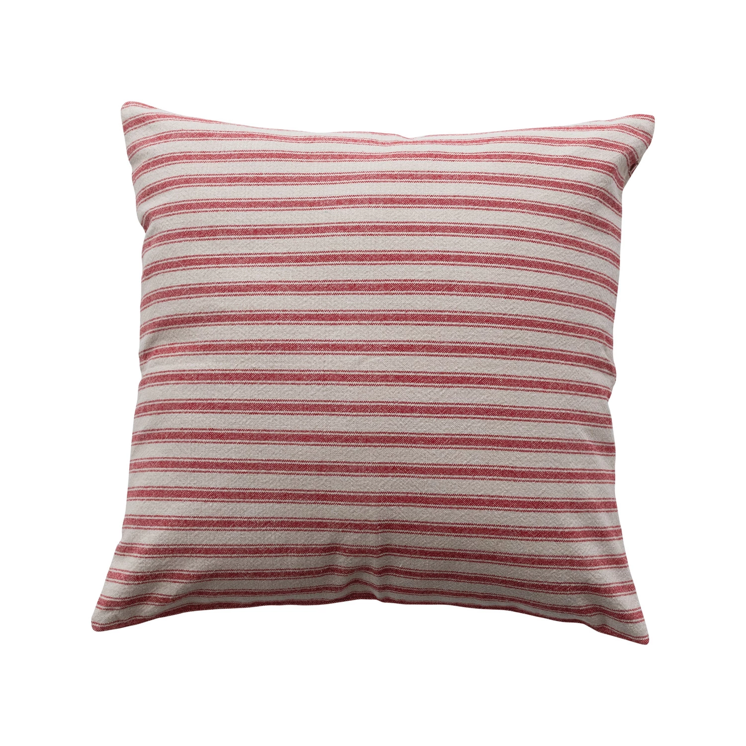 Catalog Name: 20" Square Woven Cotton Striped Pillow, Red & Natural