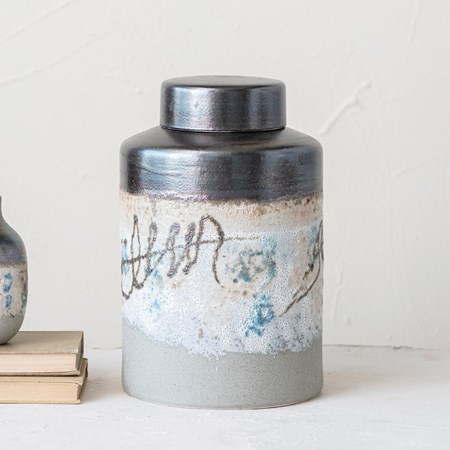 18" Square Cotton & Linen Printed Pillow with Ornament Pattern ©